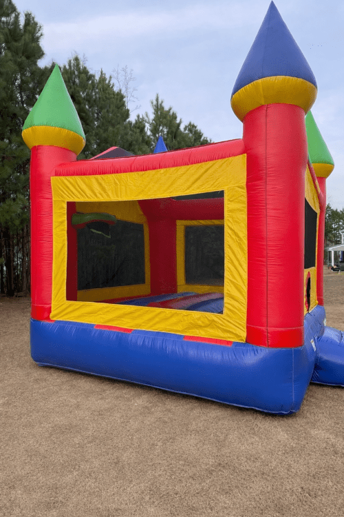 Bring the fun of a royal adventure to your next event with our Castle Crossover Bounce House with Basketball Hoop! This vibrant, castle-themed inflatable features spacious jumping area and a built-in basketball hoop for added excitement and friendly competition. Kids can bounce, shoot, and play for hours in a safe, enclosed design with mesh siding for visibility and airflow. Perfect for birthday parties, school events, church gatherings, and backyard celebrations!